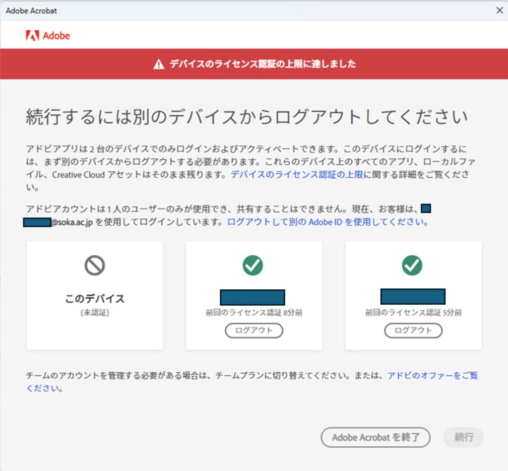 ①「デバイスのライセンス認証の上限に達しました」と表示される場合