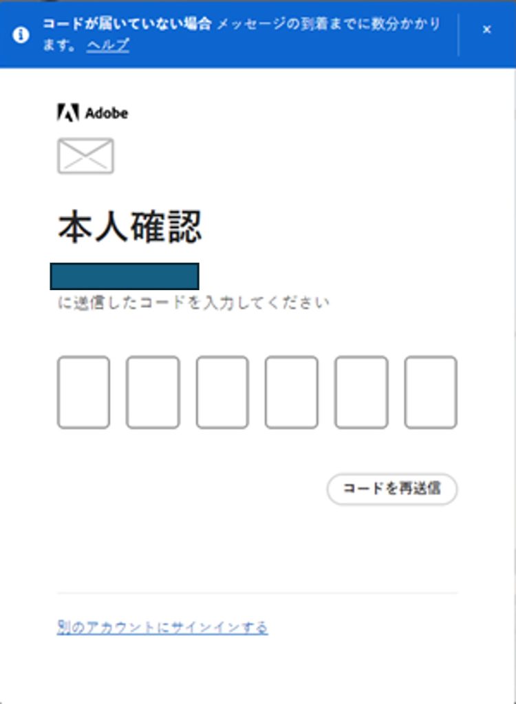 上記のような画面が表示された場合、自身のアドレス(@soka.ac.jp)宛にコード認証のメールが送信されます。コード入力に誤りが無い場合、認証成功し、Acrobat利用が可能になります。